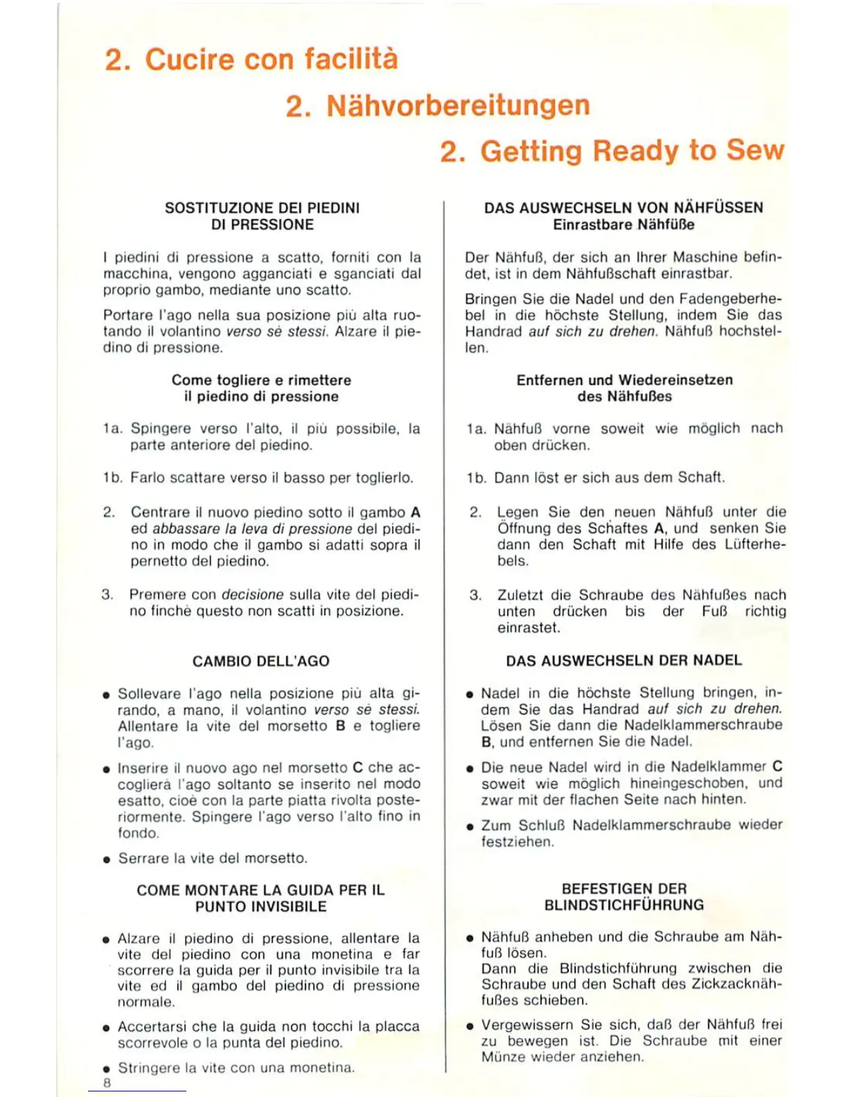 Singer Magic 8134; Magic 8234 - Getting Ready to Sew; Changing Presser Feet; Changing the Needle; Attaching Blindstitch Hem Guide