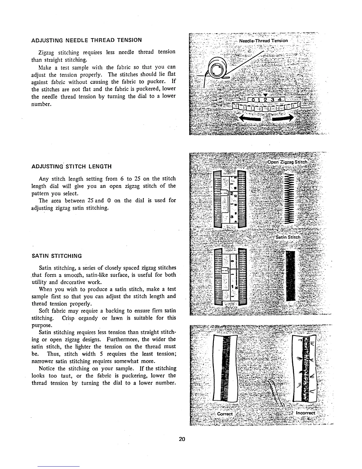 Singer Magic Bobbin 960U - Adjusting Needle Thread Tension; Adjusting Stitch Length; Satin Stitching
