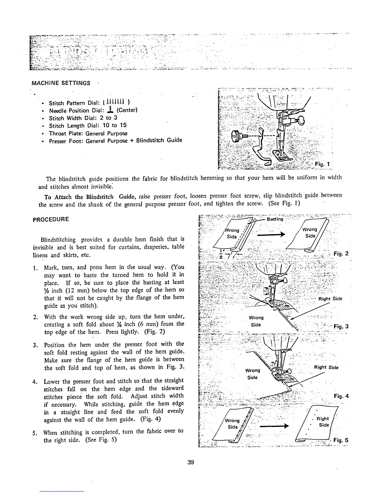 Singer Magic Bobbin 960U - BLINDSTITCHING; Blindstitch Guide and Procedure