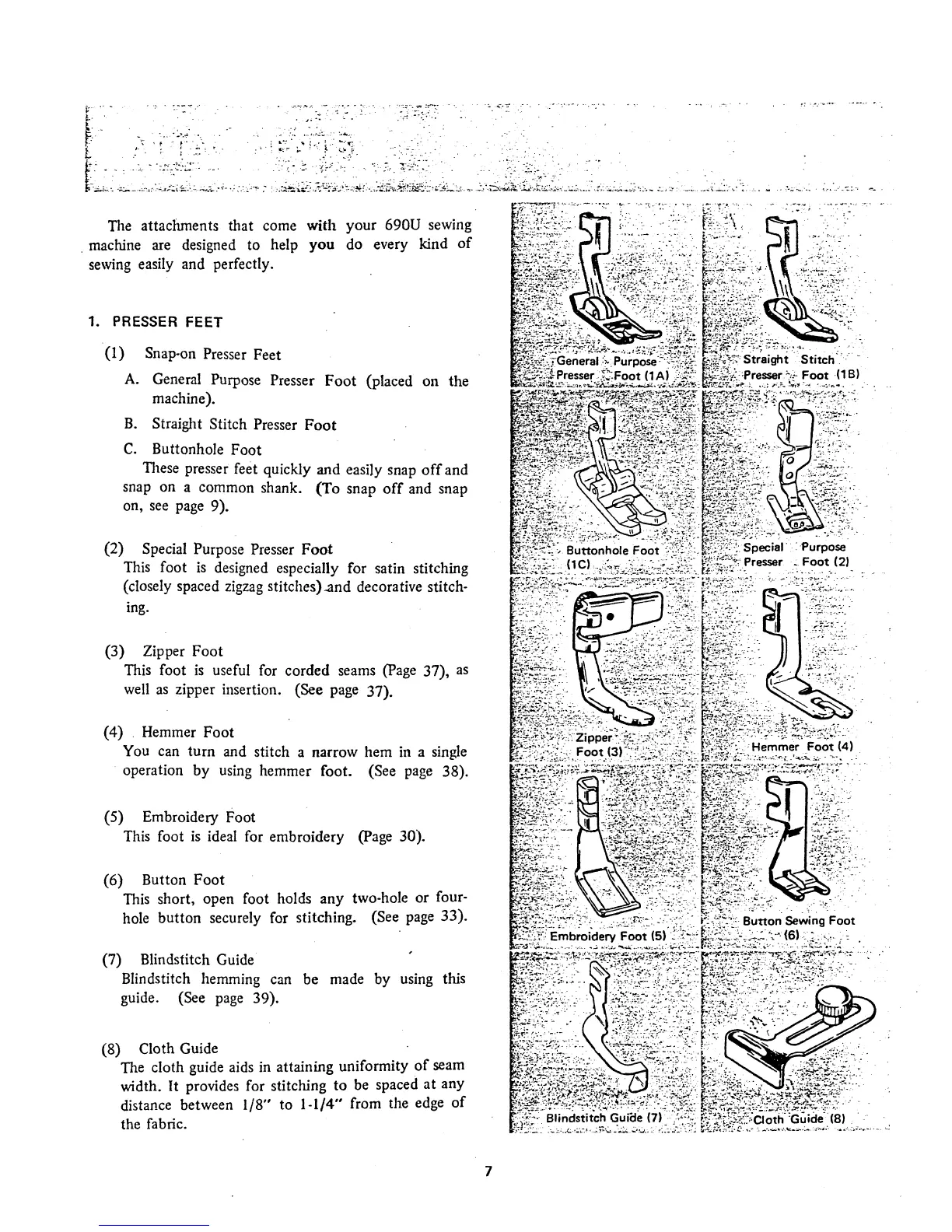Singer Magic Bobbin 960U - MACHINE ATTACHMENTS; Presser Feet