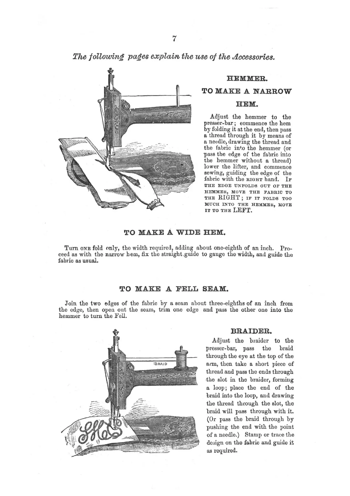 Singer MEDIUM - Machine Accessories; Hemmer Usage; Braider Usage
