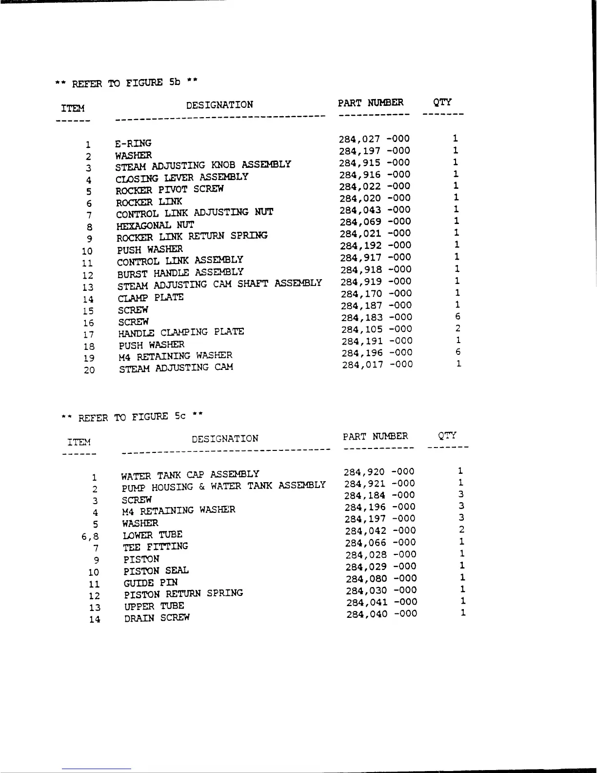 Singer MSP7 - Figure 5 b Part List; Figure 5 c Part List