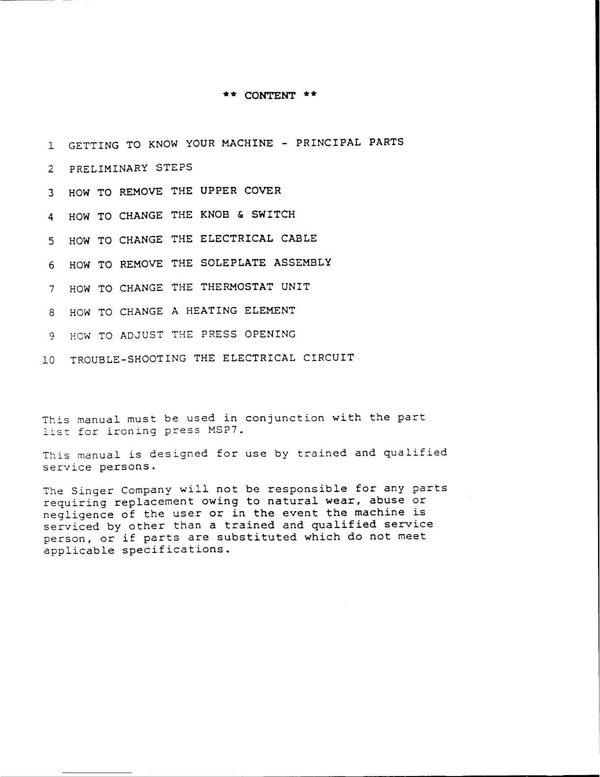 Singer MSP7 - Content