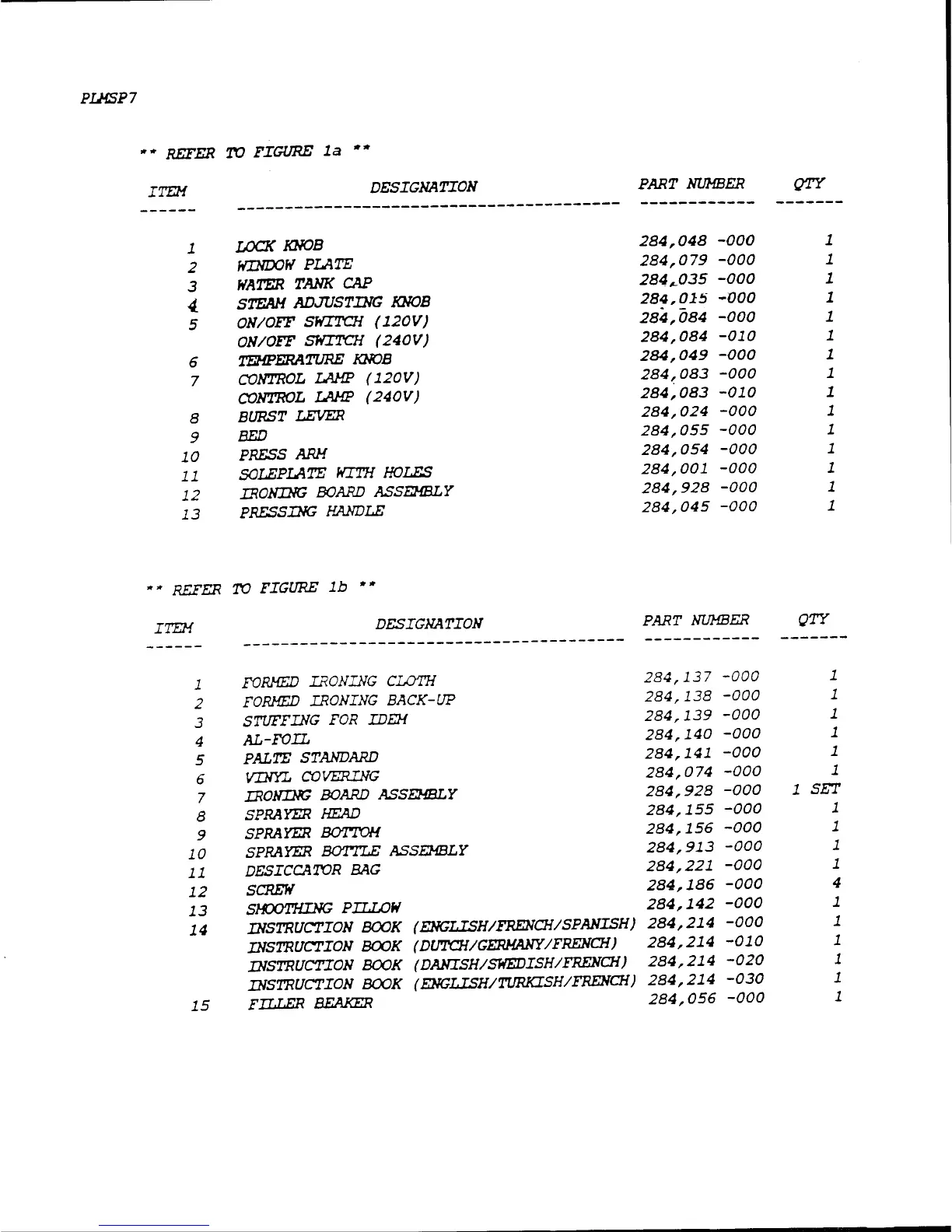 Singer MSP7 - Figure 1 a Part List; Figure 1 b Part List