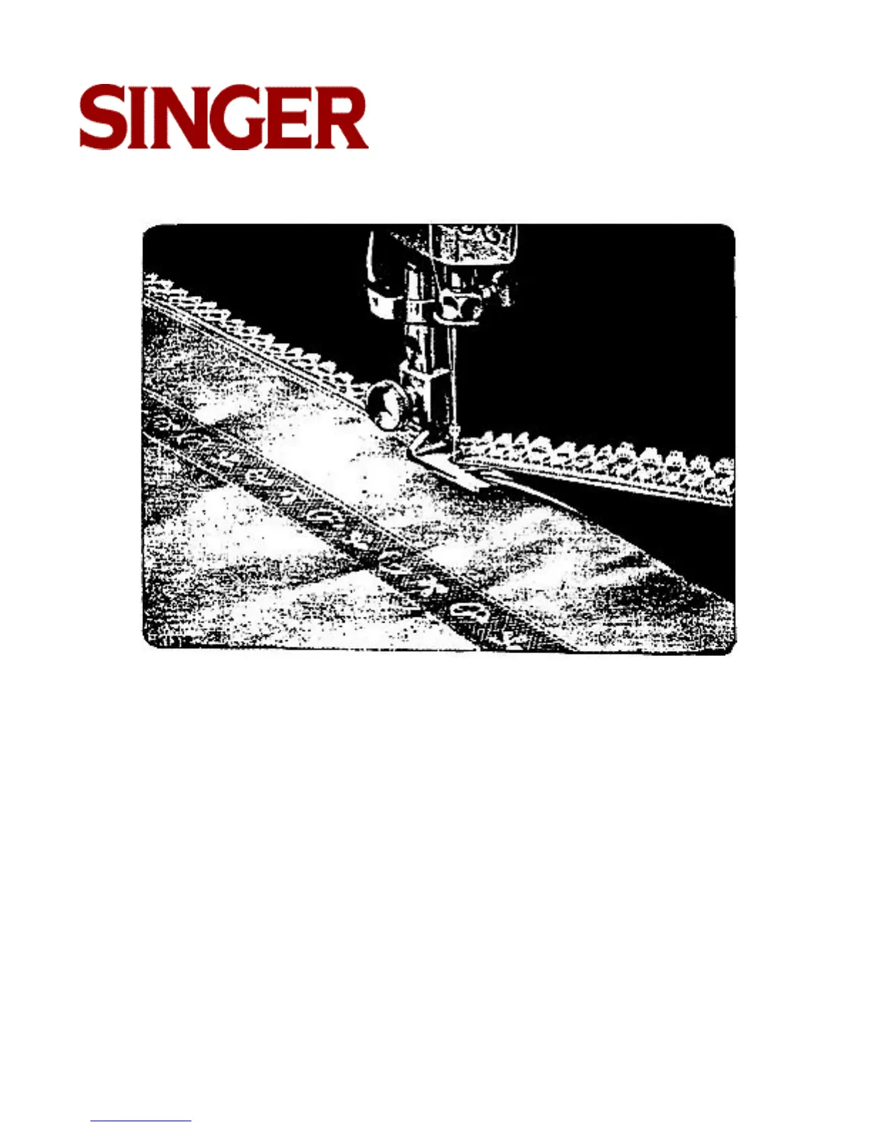 both the lace and hem. Then let down the presser bar and guide the lace over the front of the