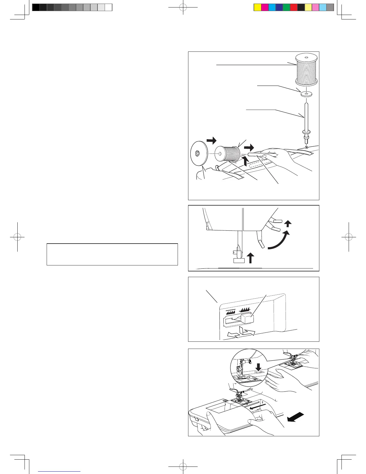 Attach the spool pin. Place the felt disc over it. Place a thread