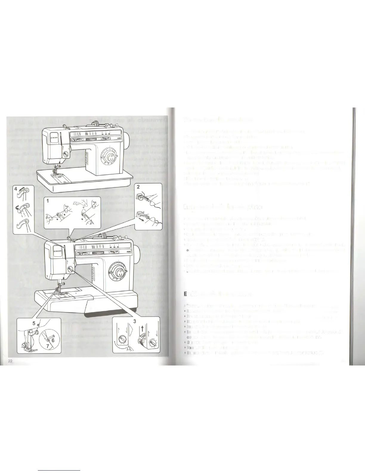 • Lead thread from spool and snop into thread guide (1) and with only one hond pass the thread