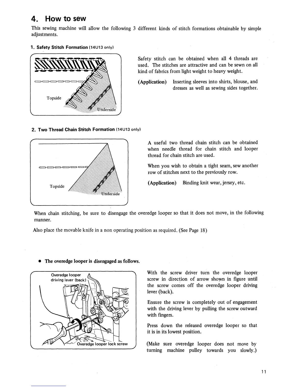 Singer Professional 14U13 - How to Sew; Stitch Formation Types; Disengaging Overedge Looper