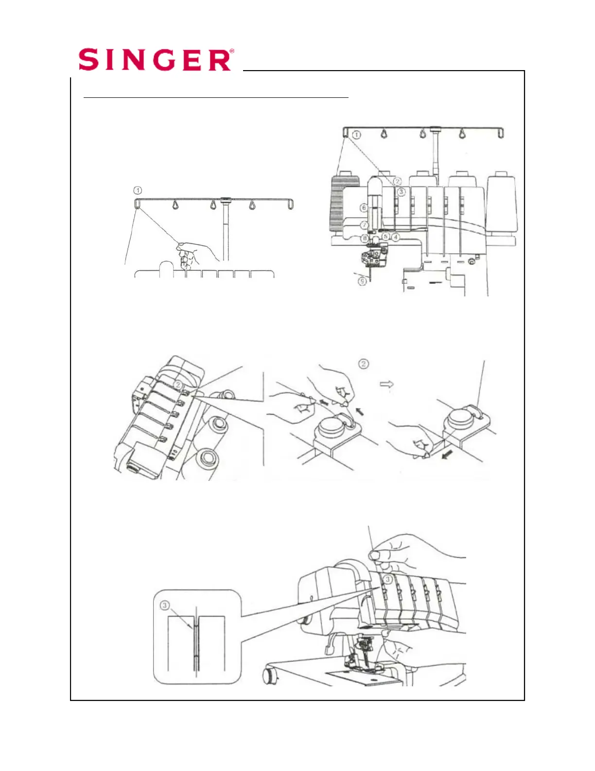 3. Thread the top cover thread guide by pulling the thread towards the left until