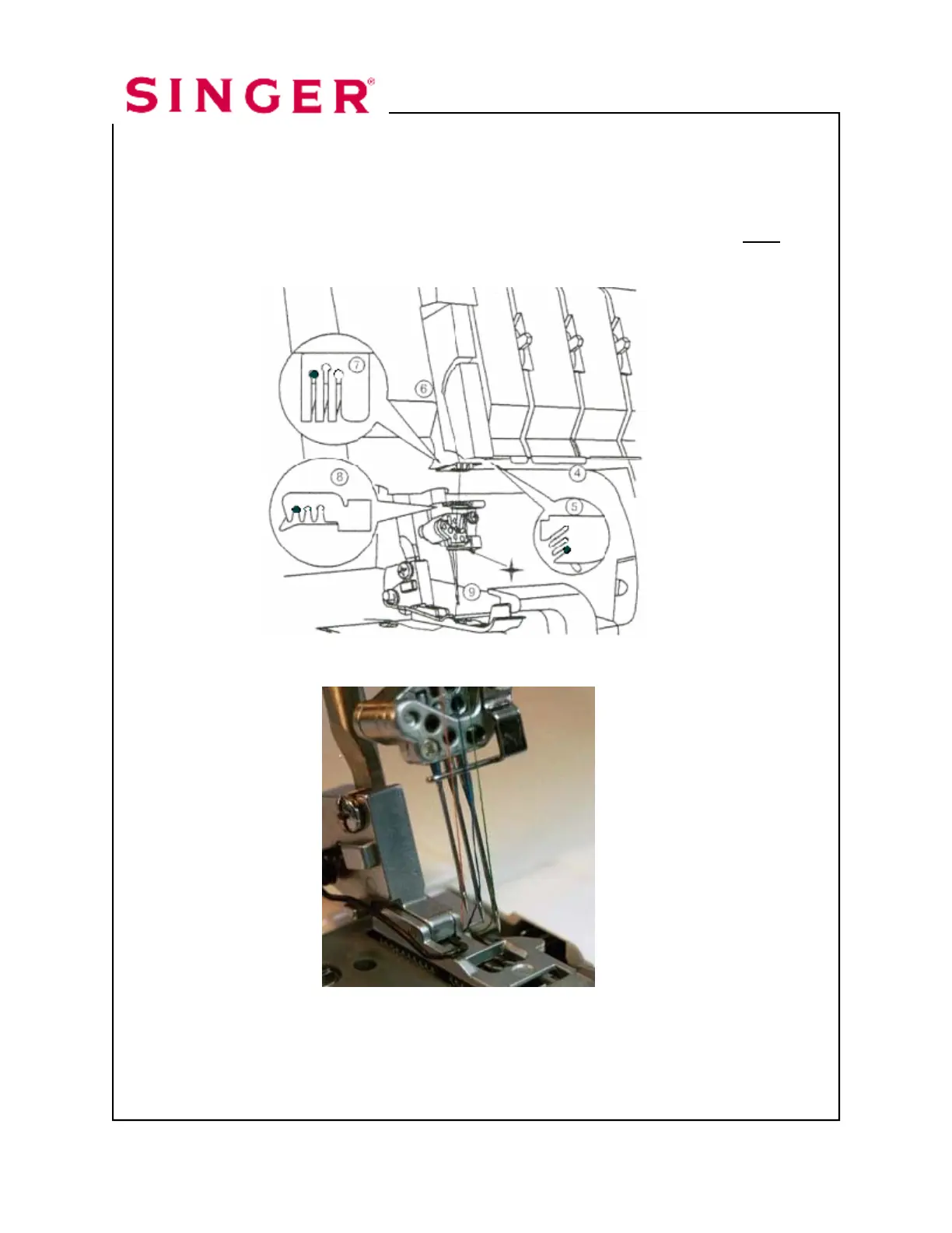 7. Thread the eye of the Left Cover Stitch Needle .