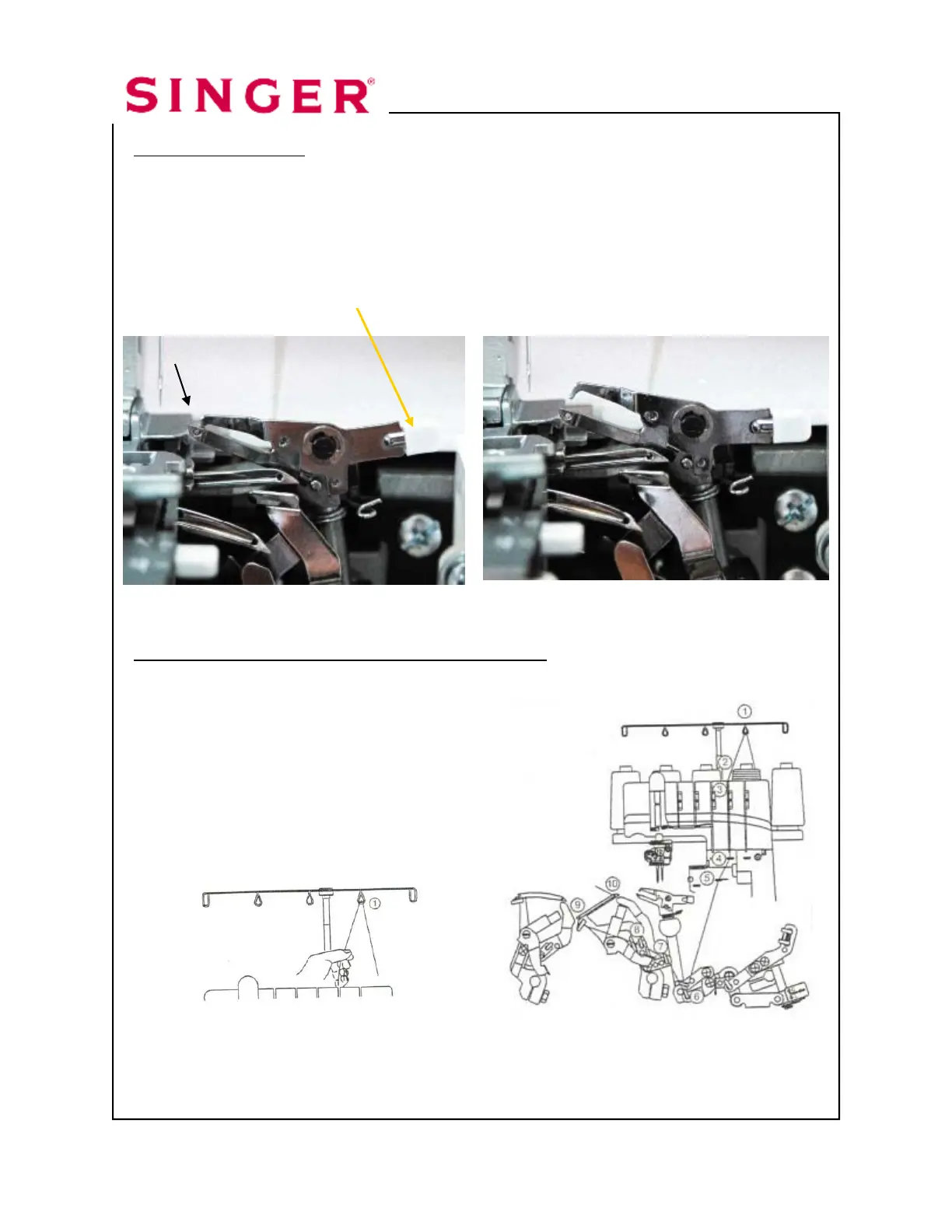 Disengage Spreader. The Upper Looper has a hole for the thread on the top of the