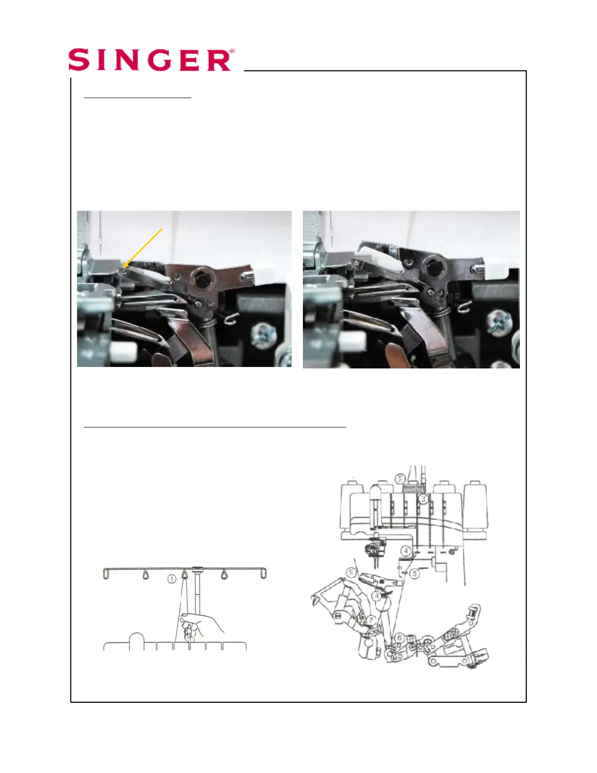 Disengage Spreader. The Upper Looper has a hole for the thread on the top of the
