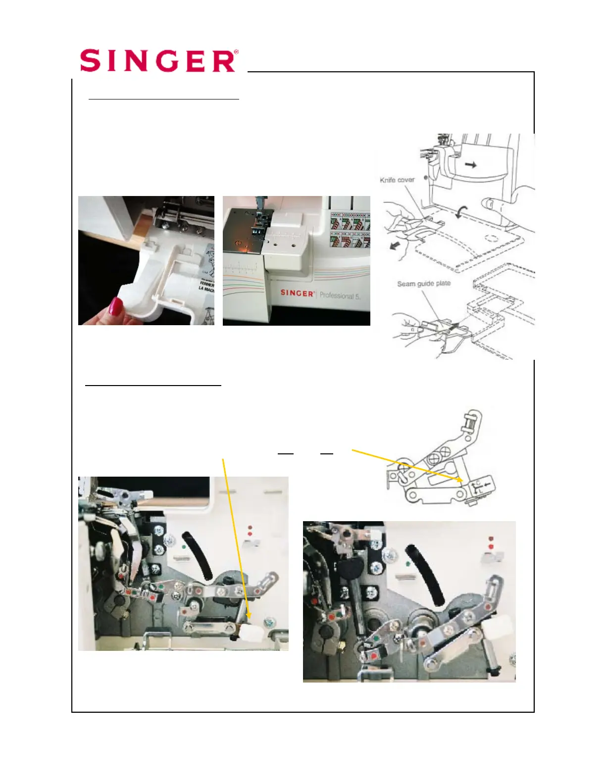 fabric and seam guides. It can only be used when the knife and the lower looper are