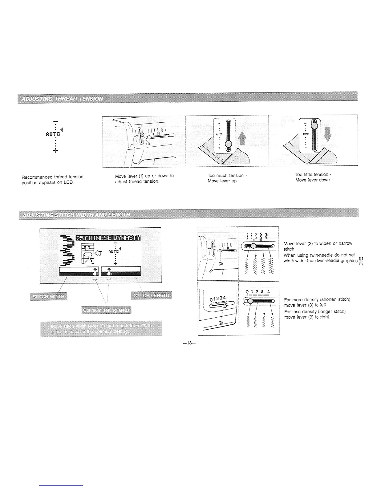 Singer Quantum 9240 - ADJUSTING THREAD TENSION; ADJUSTING STITCH WIDTH AND LENGTH