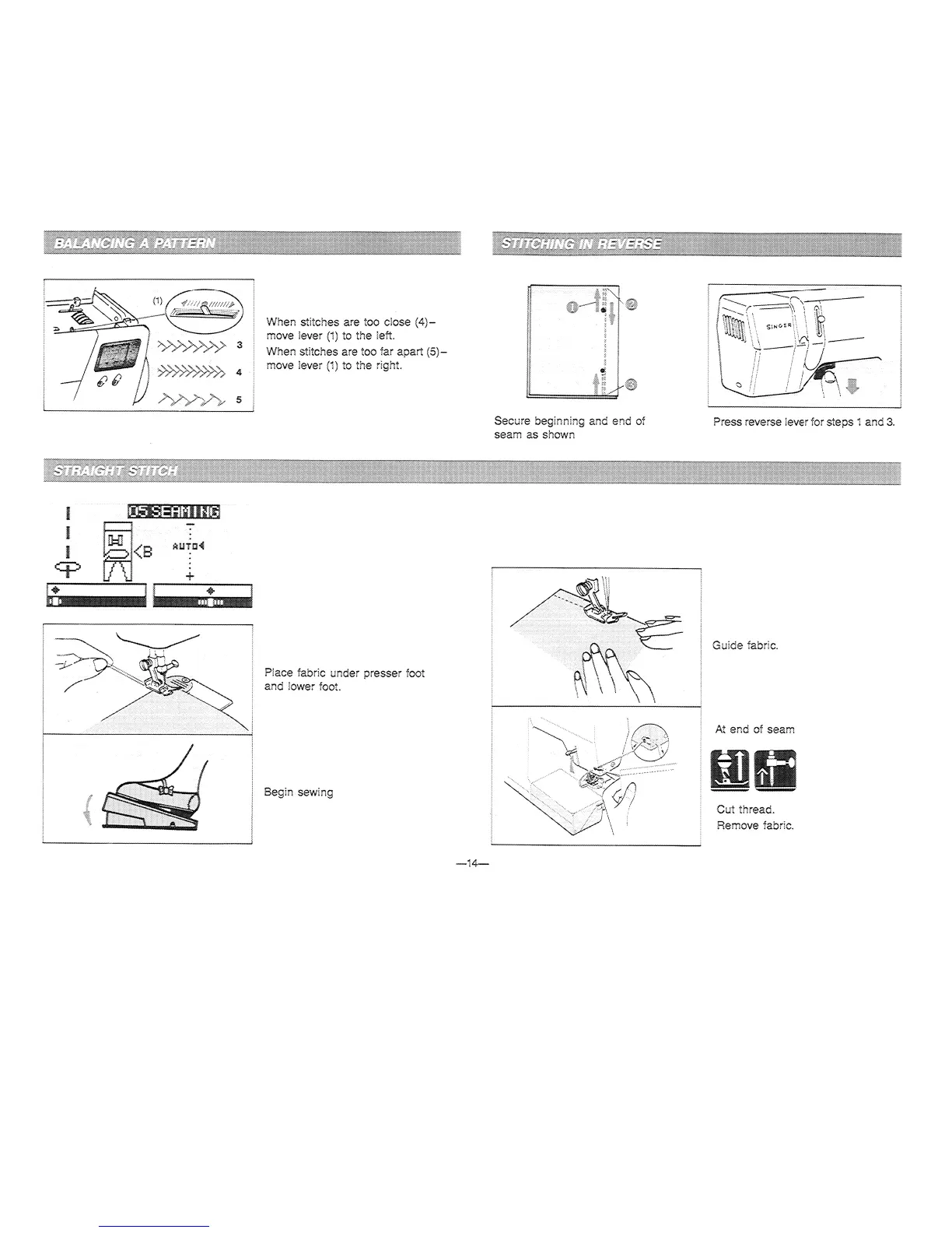 Singer Quantum 9240 - BALANCING A PATTERN; STRAIGHT STITCH; STITCHING IN REVERSE