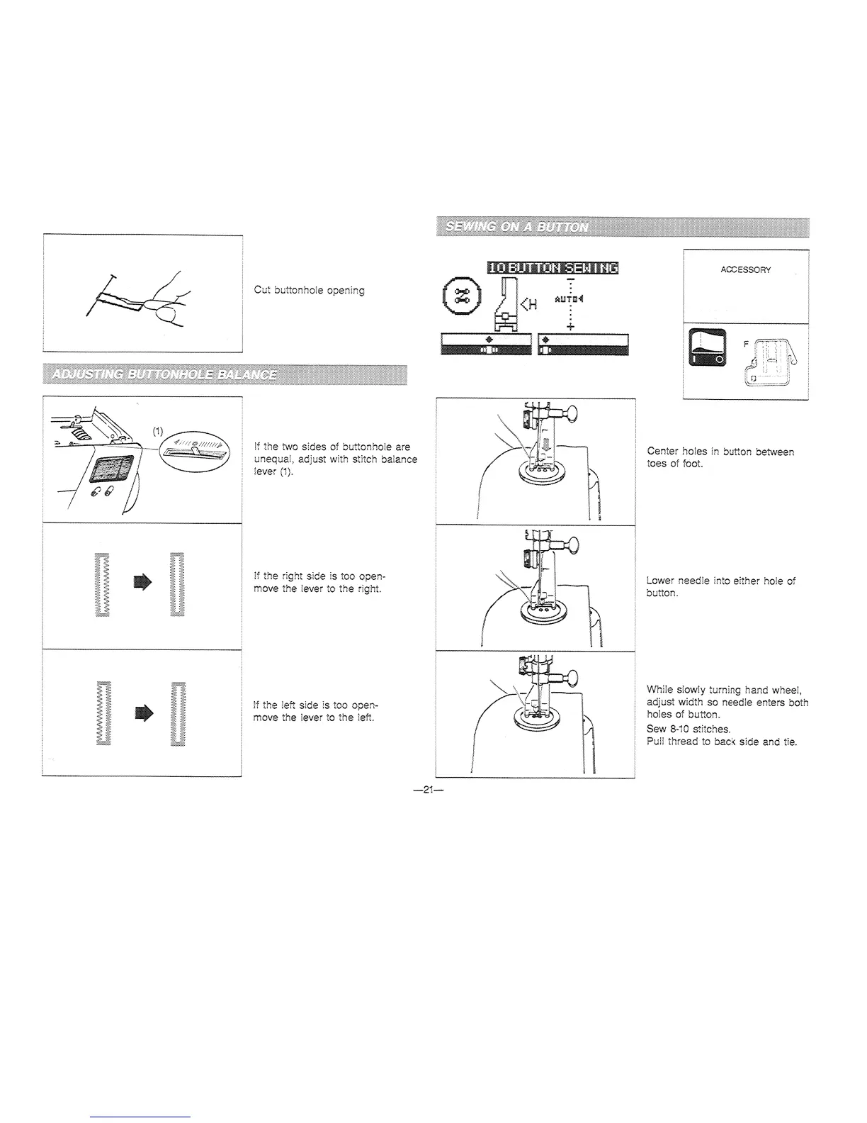Singer Quantum 9240 - ADJUSTING BUTTONHOLE BALANCE; SEWING ON A BUTTON