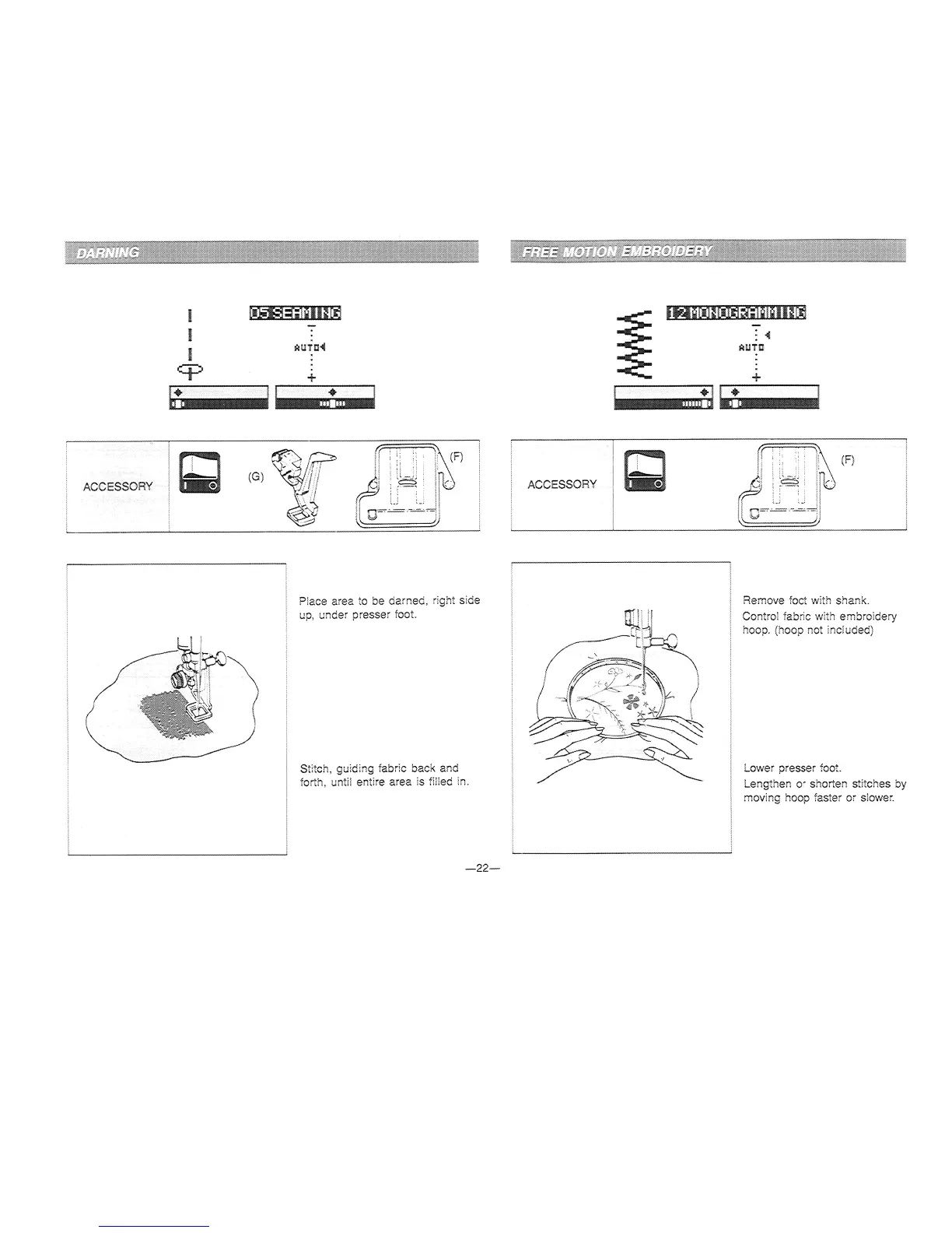 Singer Quantum 9240 - DARNING; FREE MOTION EMBROIDERY