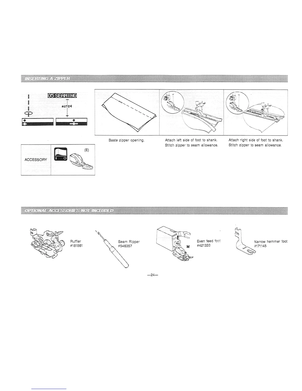 Singer Quantum 9240 - INSERTING A ZIPPER; OPTIONAL ACCESSORIES NOT INCLUDED