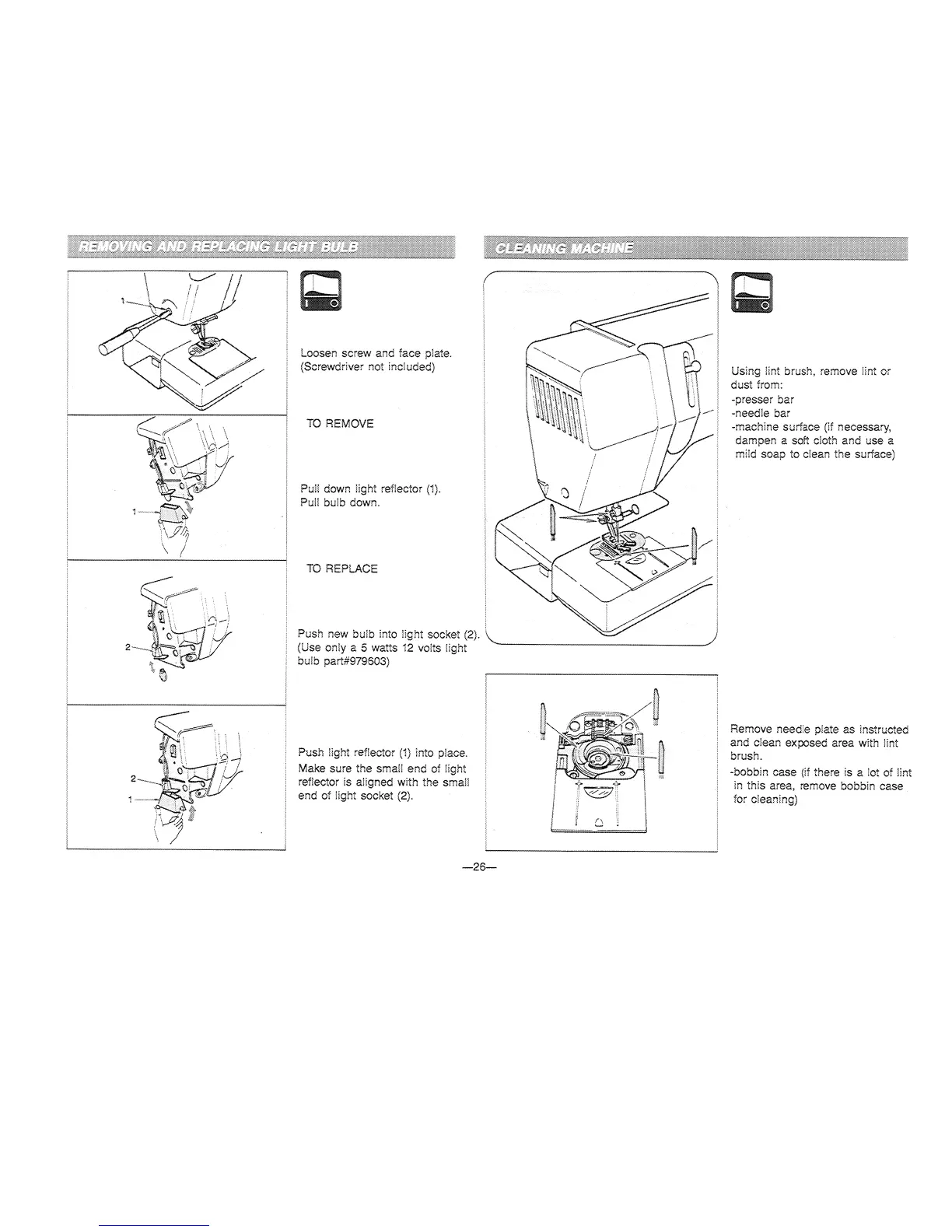 Singer Quantum 9240 - REMOVING AND REPLACING LIGHT BULB; CLEANING MACHINE