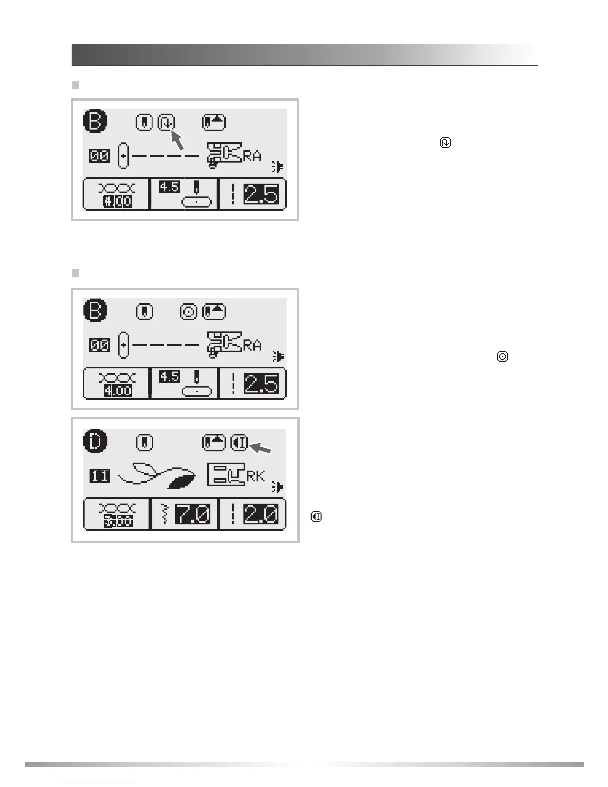 Patterns 00-01, 04. After selecting the stitch, press
