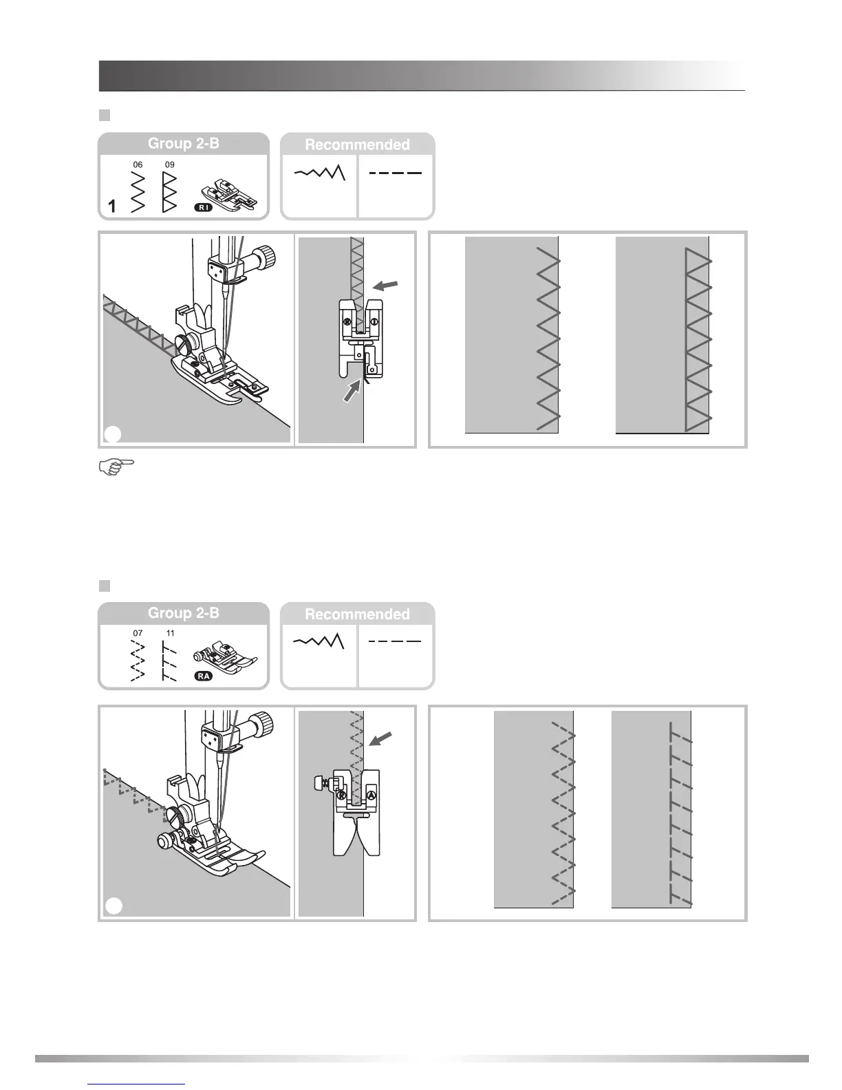 2. Sew the fabric with the fabric edge against the guide of the overcasting foot.