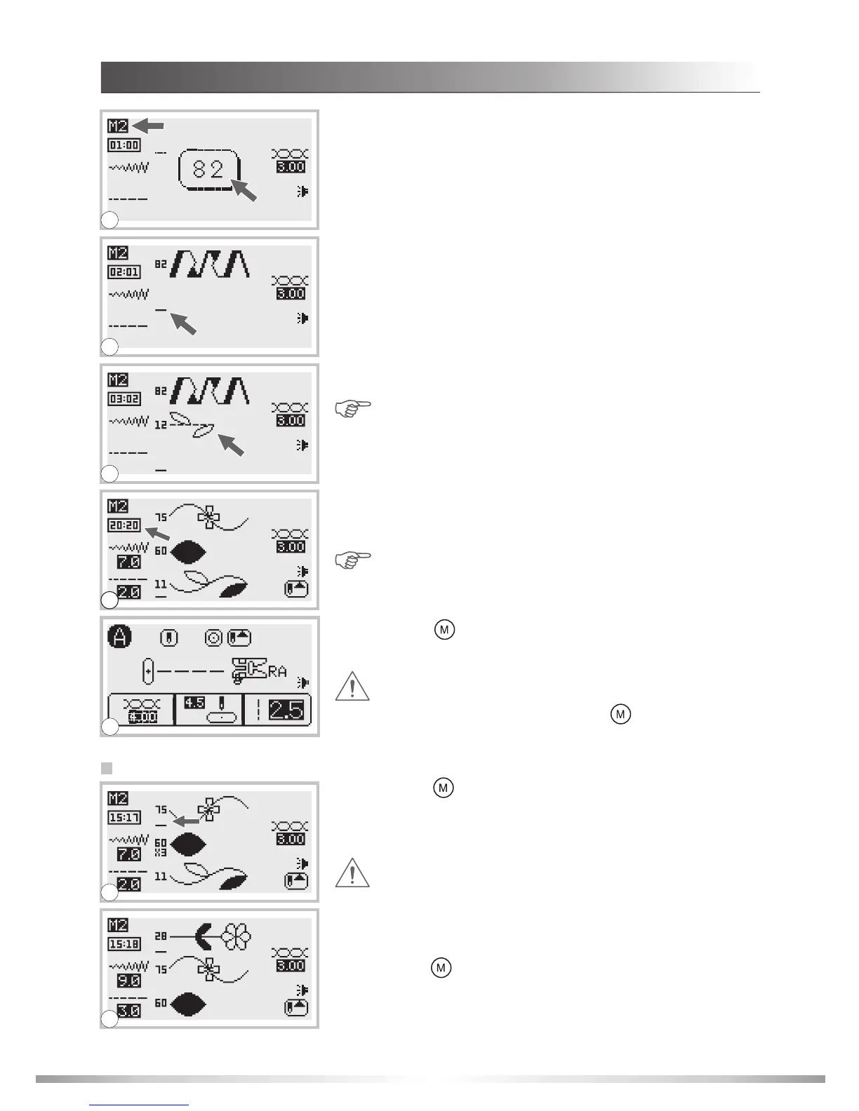 wish to edit. Press the stitch width adjustment button to move