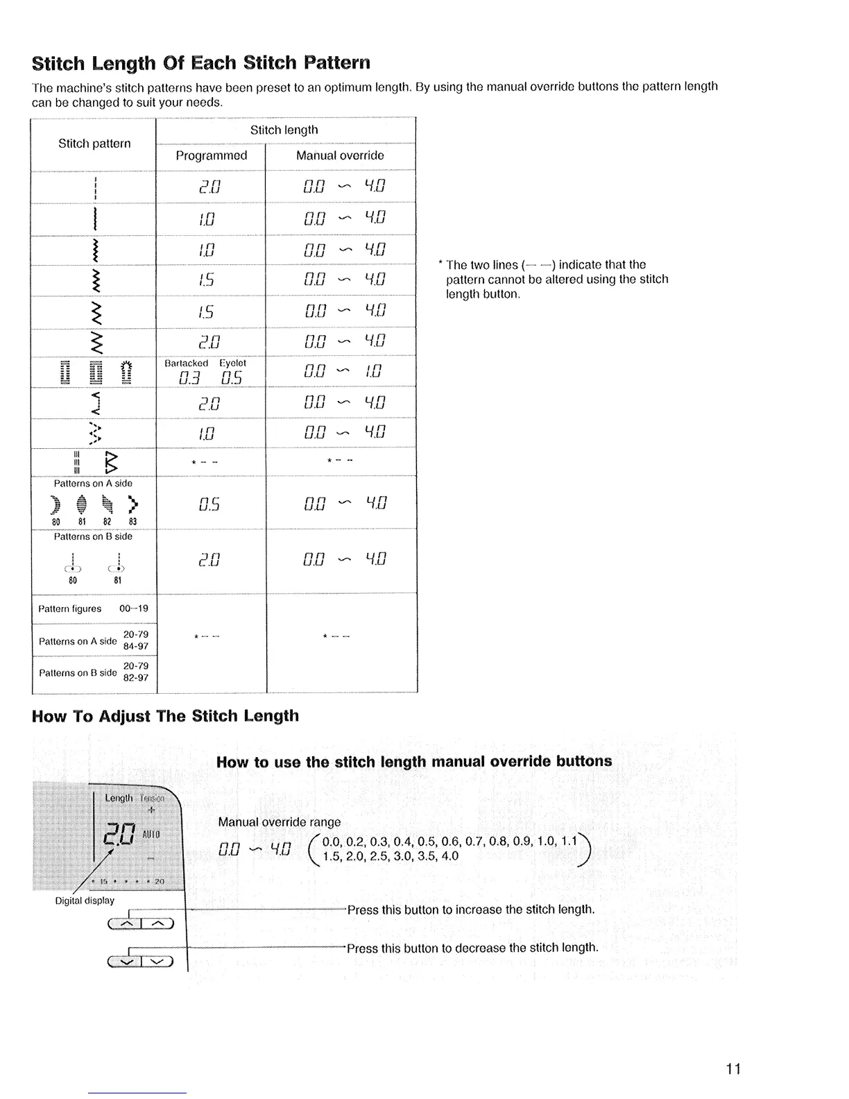 Singer Quantum XL-1 - Stitch Length of each Stitch Pattern; How to Adjust the Stitch Length