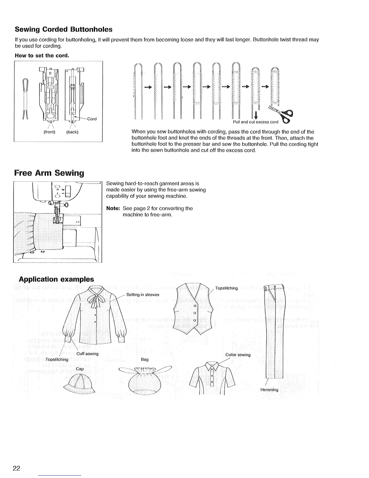 Singer Quantum XL-1 - Sewing Corded Buttonholes; Free Arm Sewing