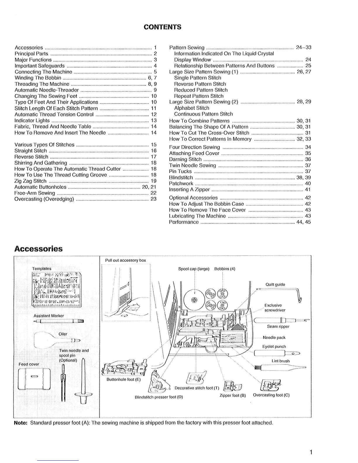 Singer Quantum XL-1 - Table of Contents; Accessories