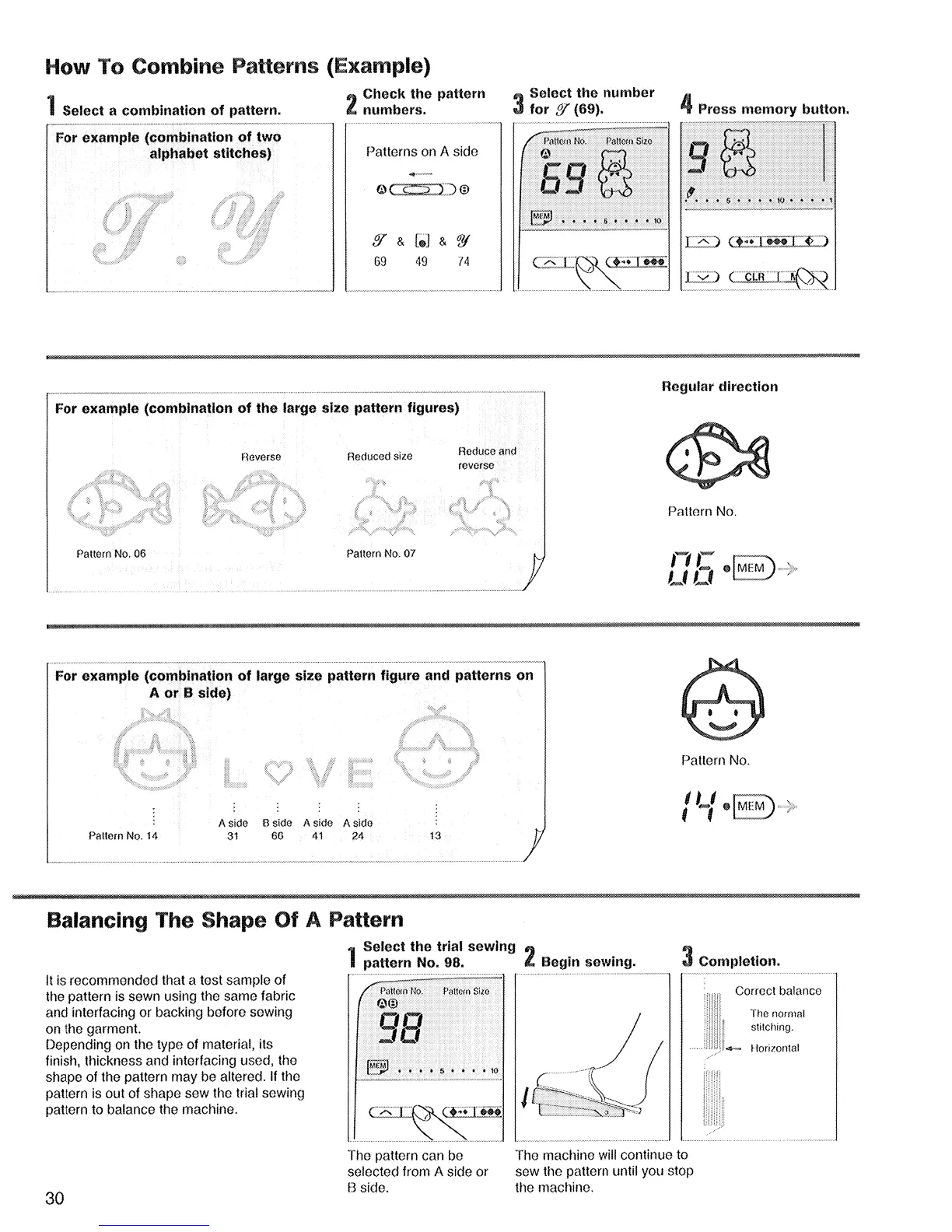 Singer Quantum XL-1 - How to Combine Patterns; Balancing the Shape of a Pattern