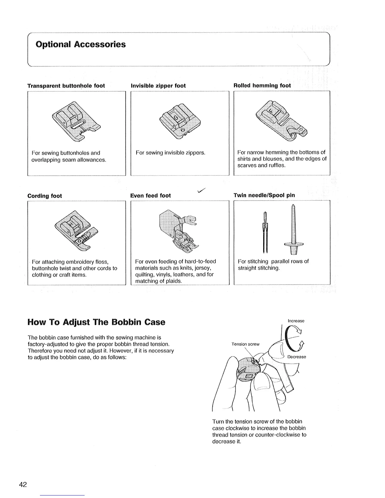 Singer Quantum XL-1 - Optional Accessories; How to Adjust the Bobbin Case