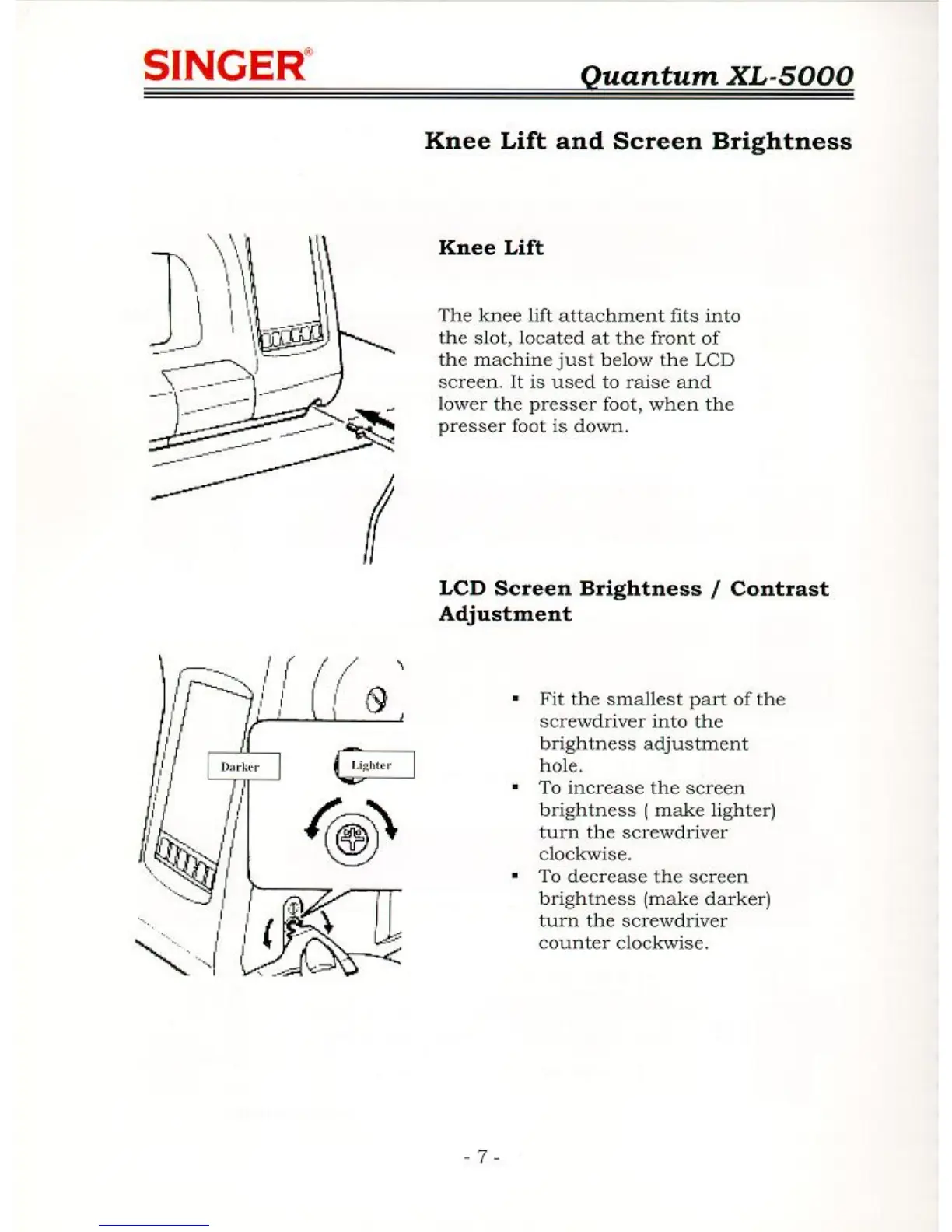 Singer QUANTUM XL-5000 - Knee Lift and Screen Brightness