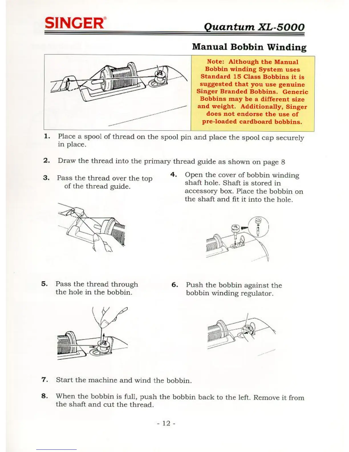 Singer QUANTUM XL-5000 - Manual Bobbin Winding