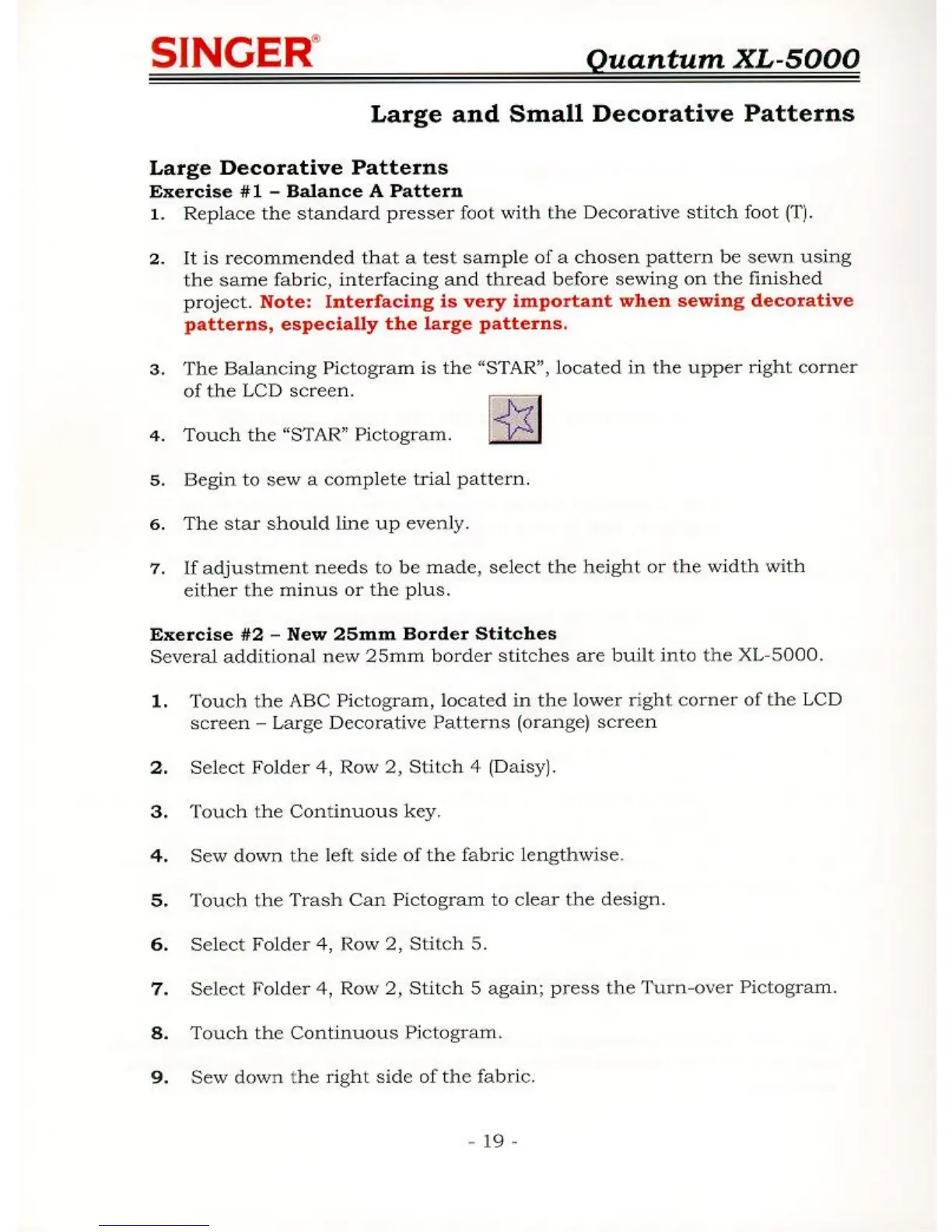 Singer QUANTUM XL-5000 - Large and Small Decorative Patterns