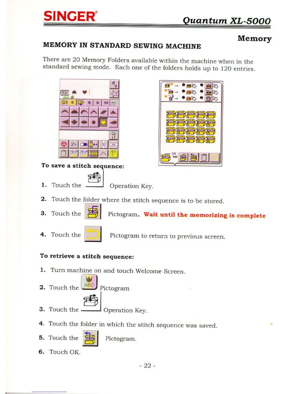 Singer QUANTUM XL-5000 - Memory in Standard Sewing Machine