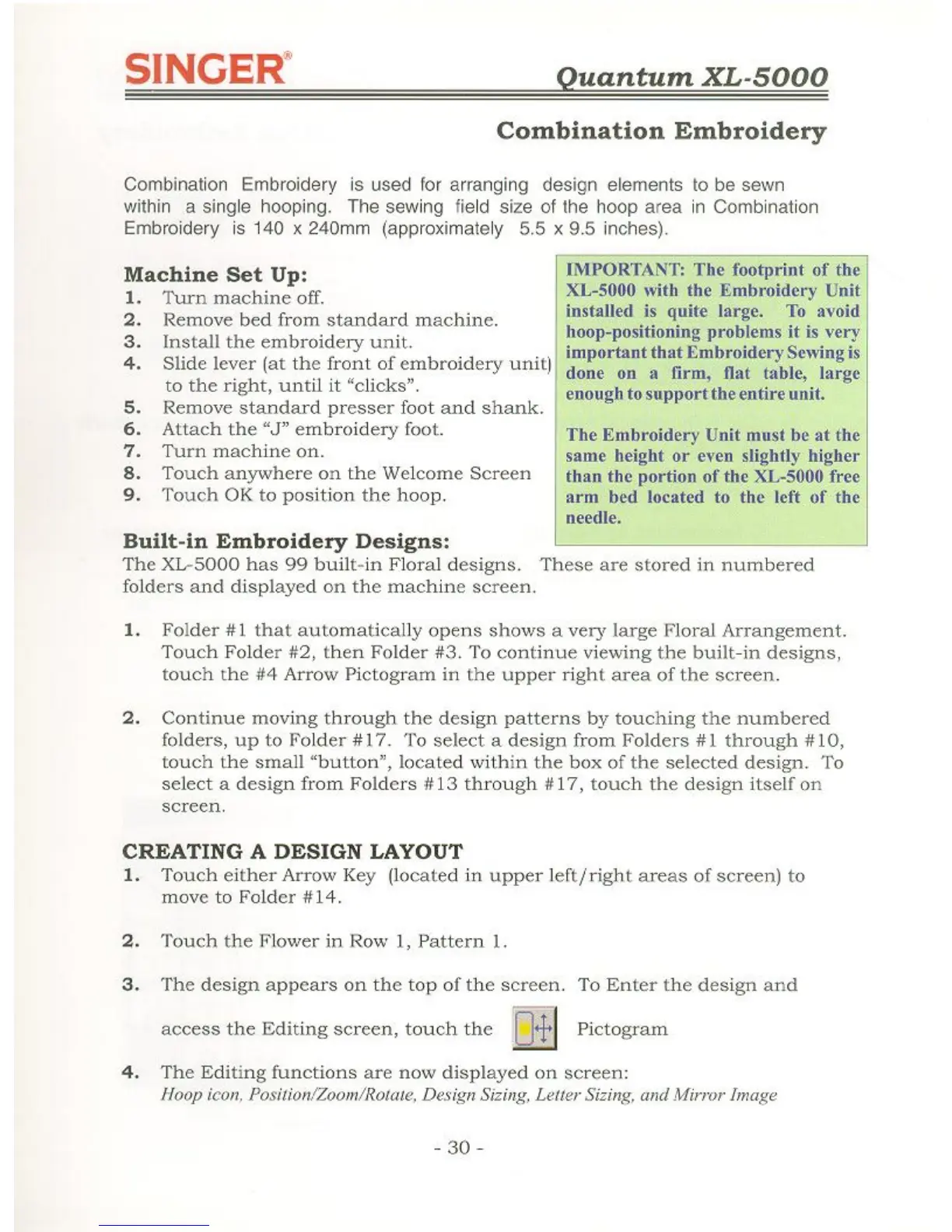 Singer QUANTUM XL-5000 - Combination Embroidery