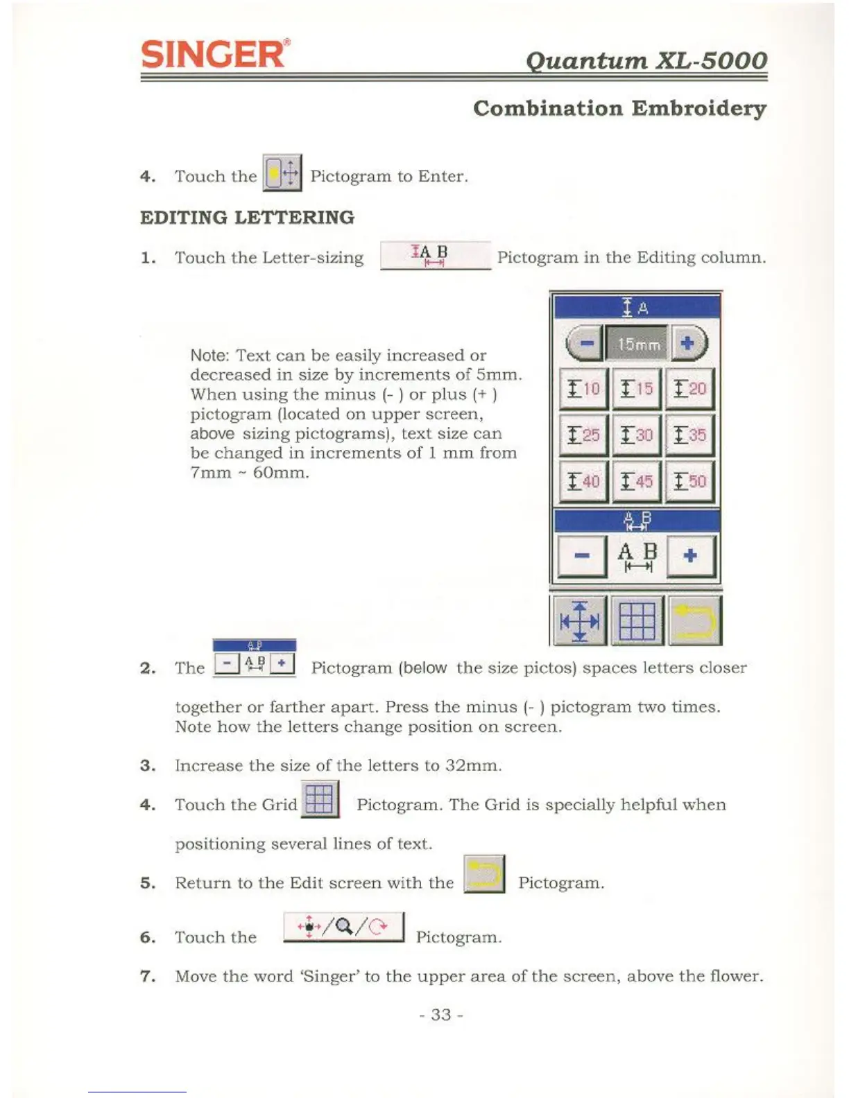 Singer QUANTUM XL-5000 - Editing Lettering