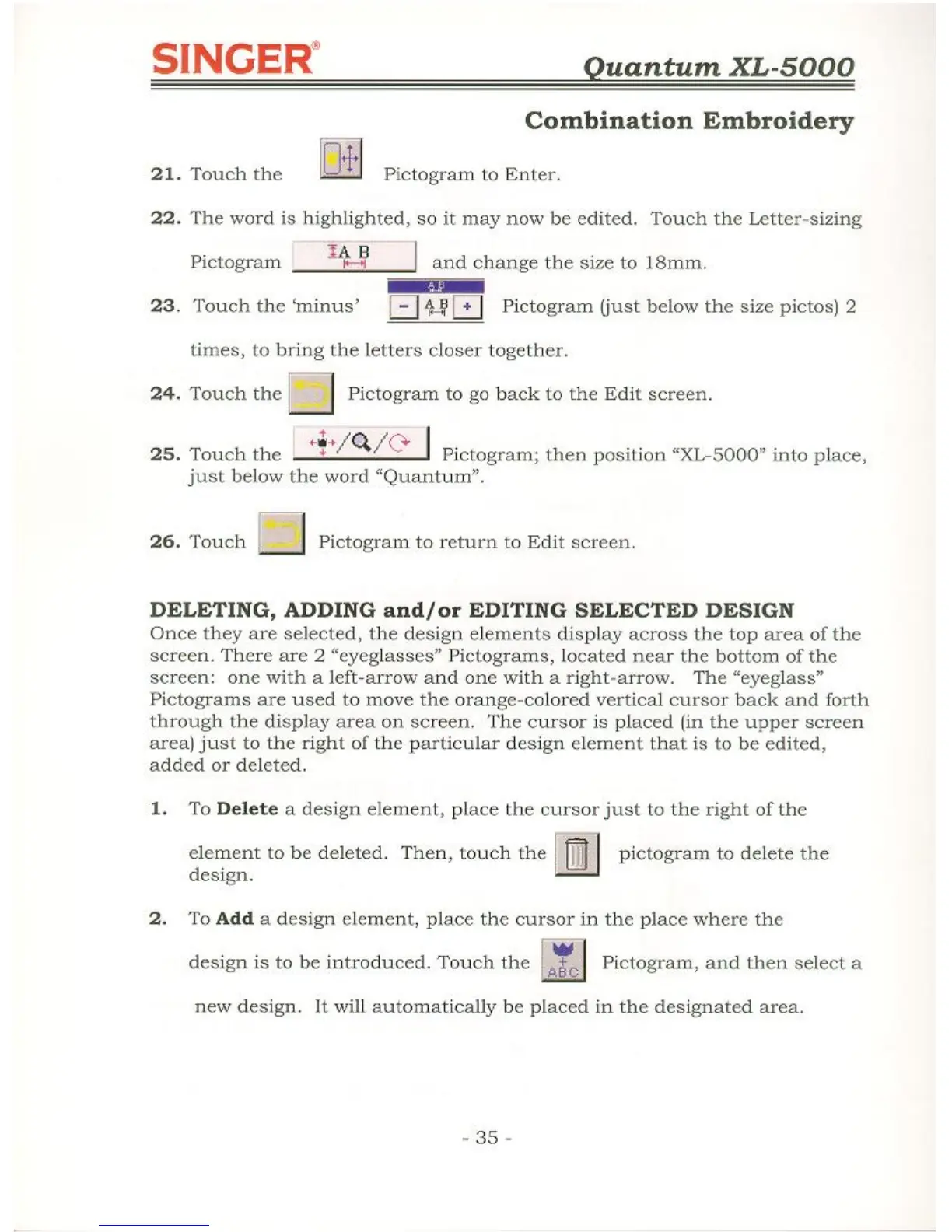 Singer QUANTUM XL-5000 - Deleting, Adding And;Or Editing Selected Design