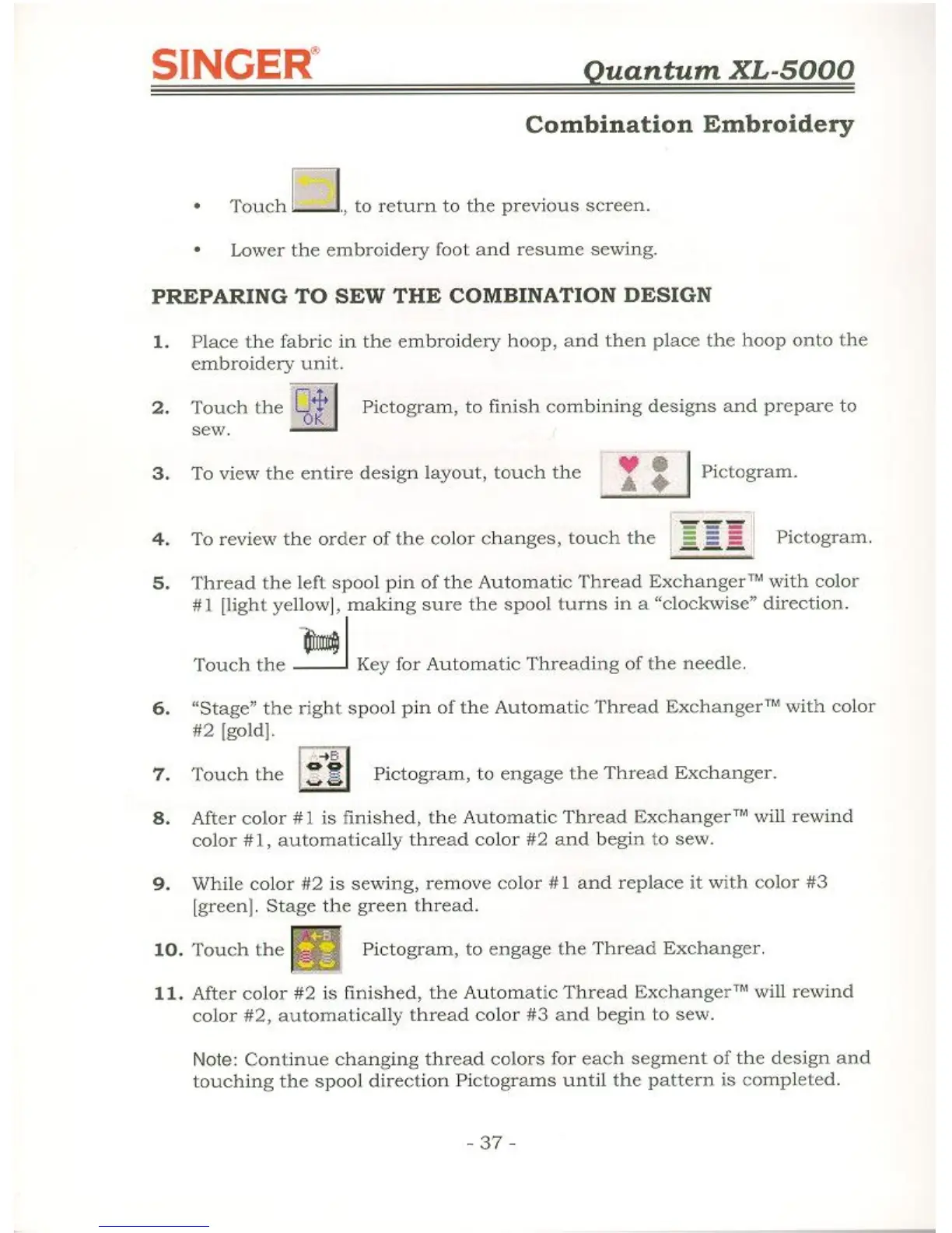 Singer QUANTUM XL-5000 - Preparing to Sew the Combination Design