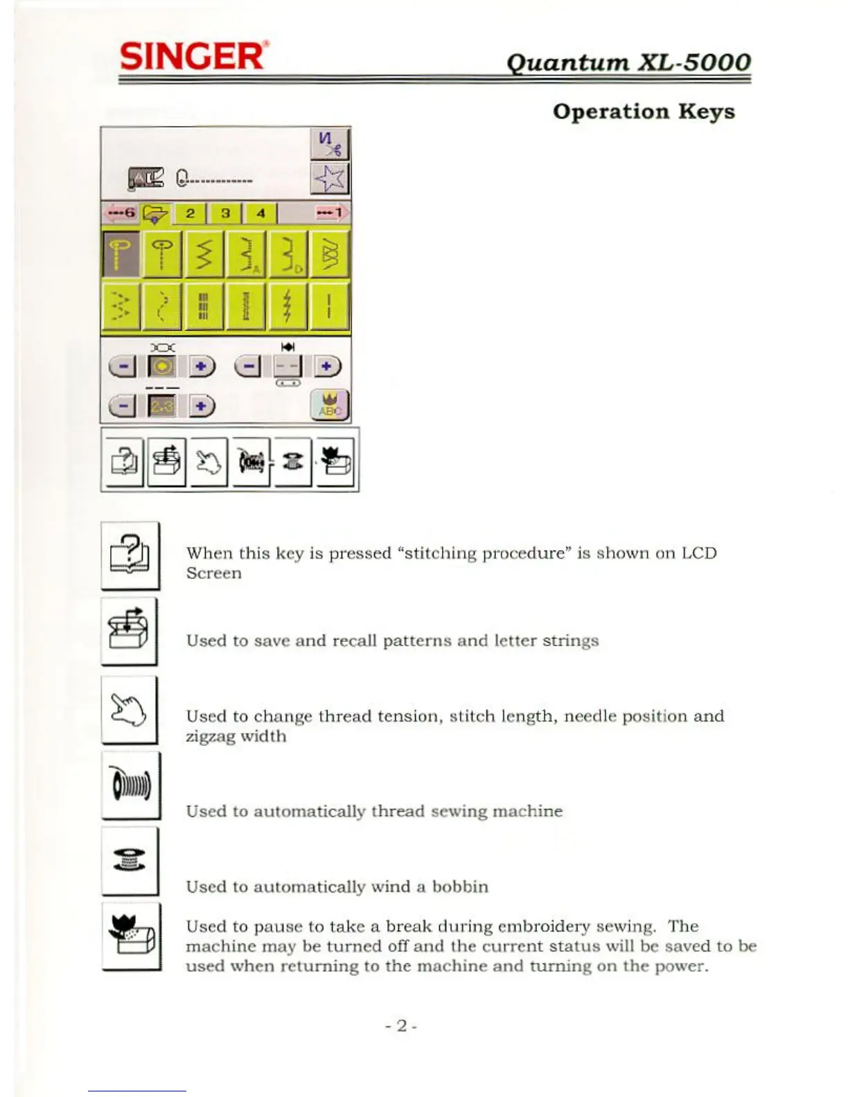 Singer QUANTUM XL-5000 - Operation Keys