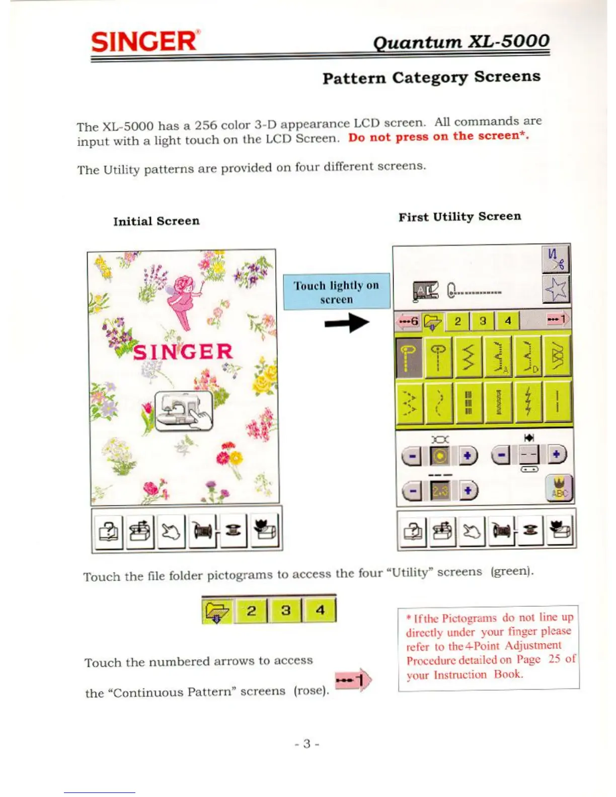 Singer QUANTUM XL-5000 - Pattern Category Screens