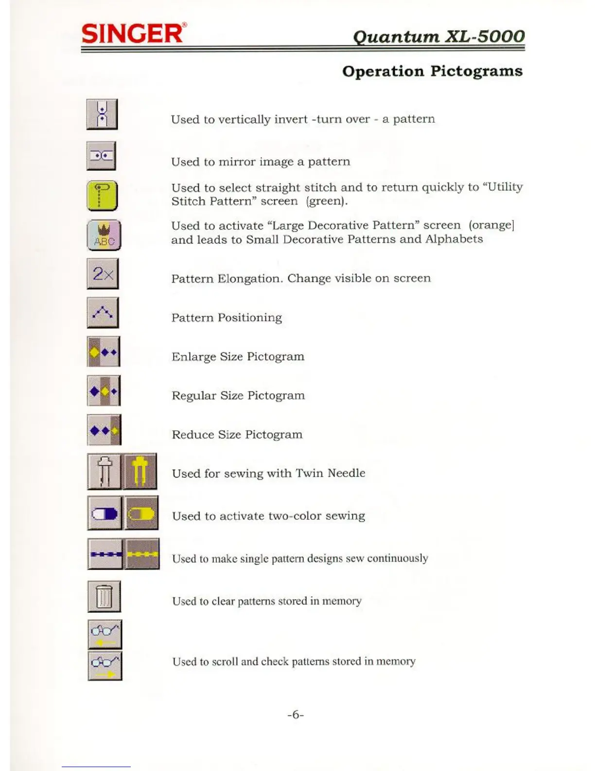 Singer QUANTUM XL-5000 - Operation Pictograms