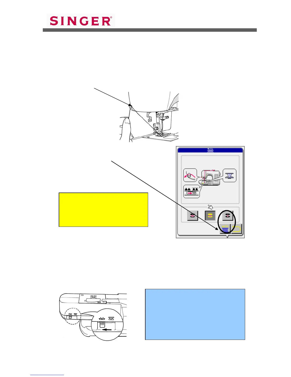11. Return the dropped feed dog lever to the left to raise the feed dogs.