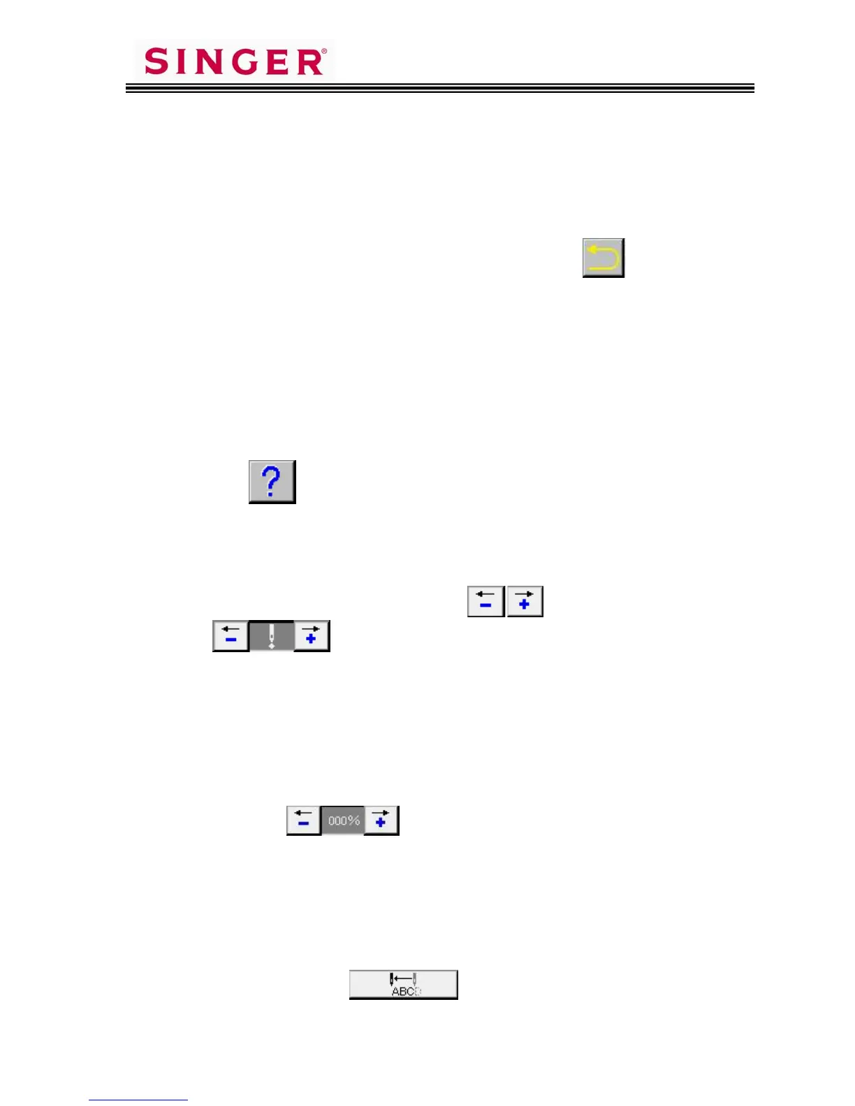 will back up the needle position, in increments of 10 stitches. The plus (+)