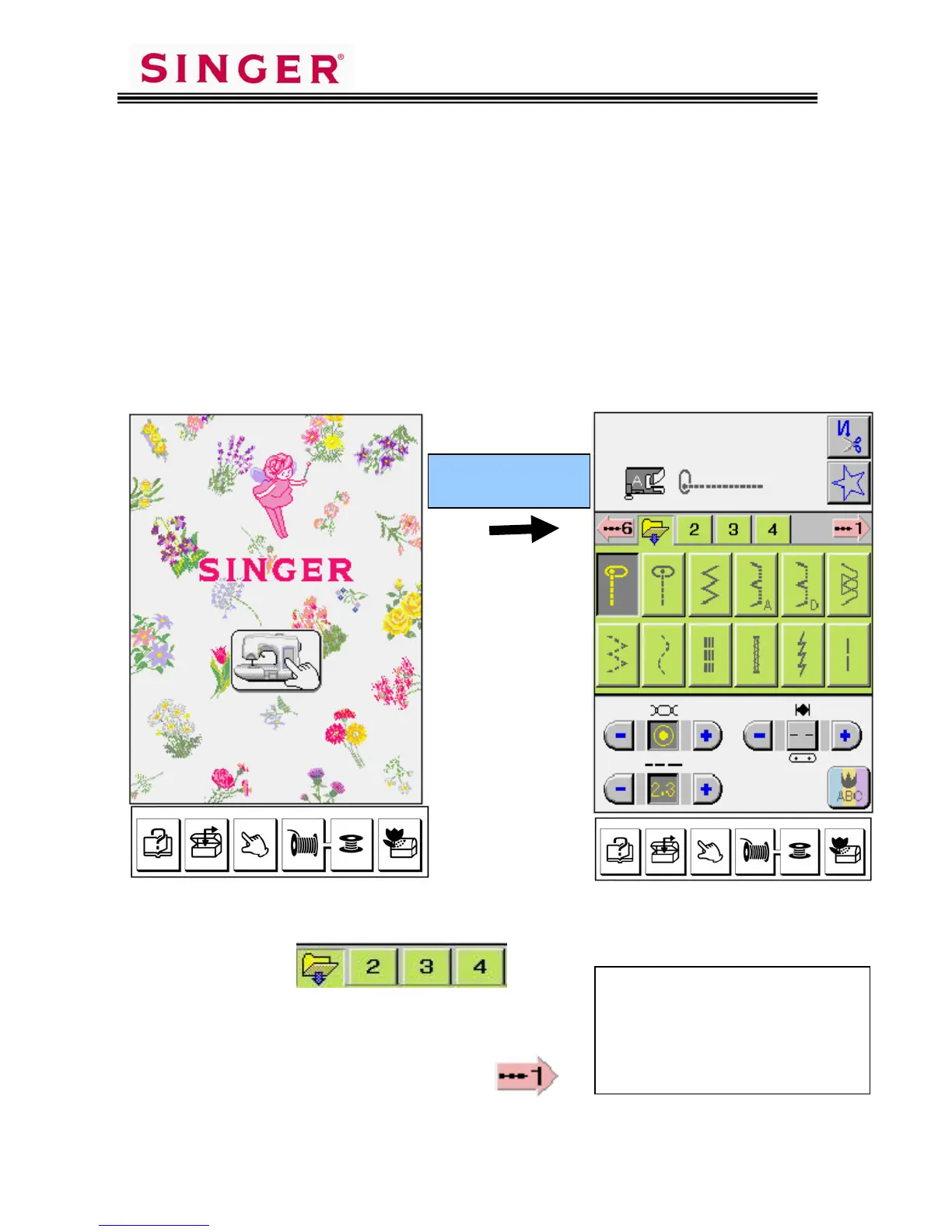 Touch the file folder pictograms to access the four “Utility” screens (green).