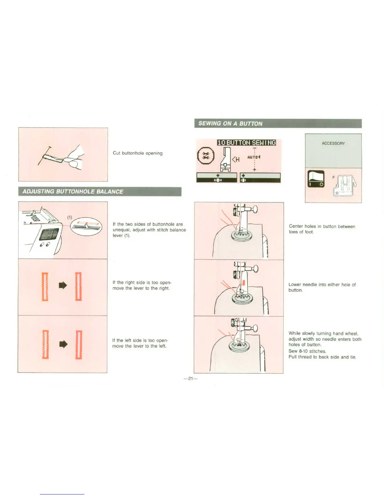 Singer Quantum - Adjusting Buttonhole Balance; Sewing on a Button