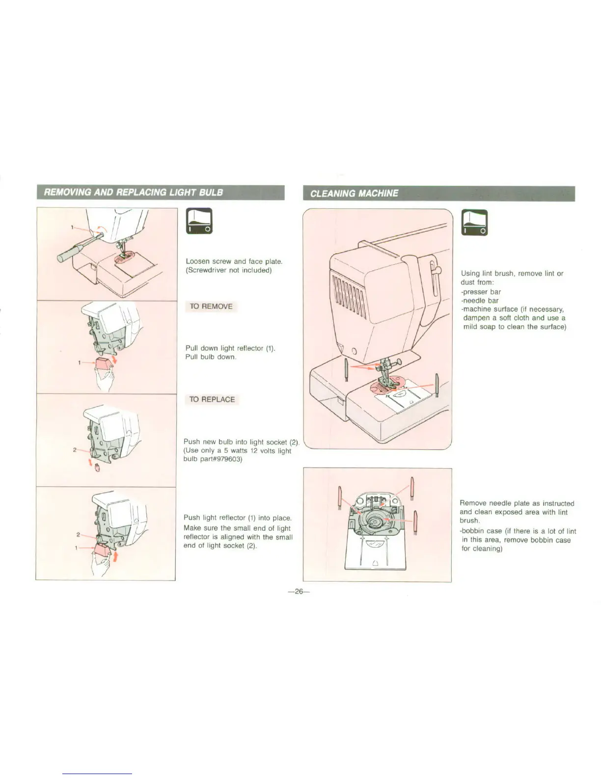 Singer Quantum - Replacing the Light Bulb; Cleaning the Sewing Machine