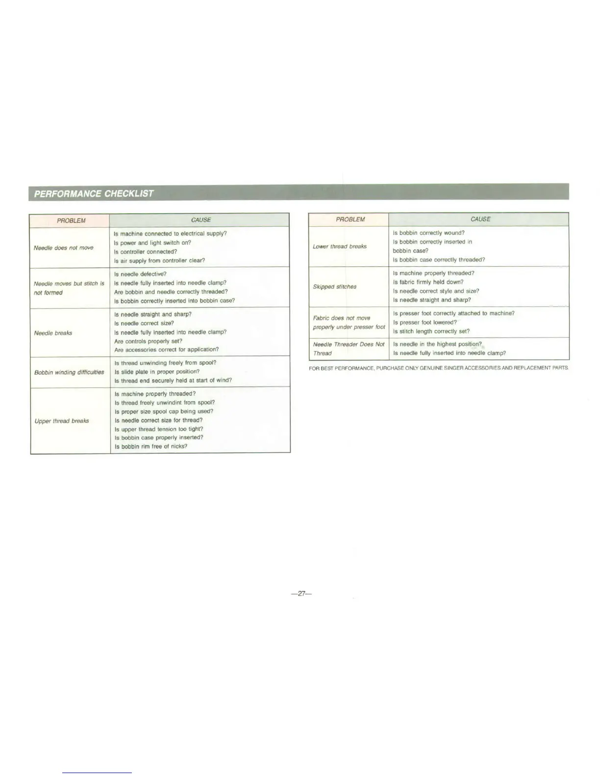 Singer Quantum - Performance Checklist and Troubleshooting