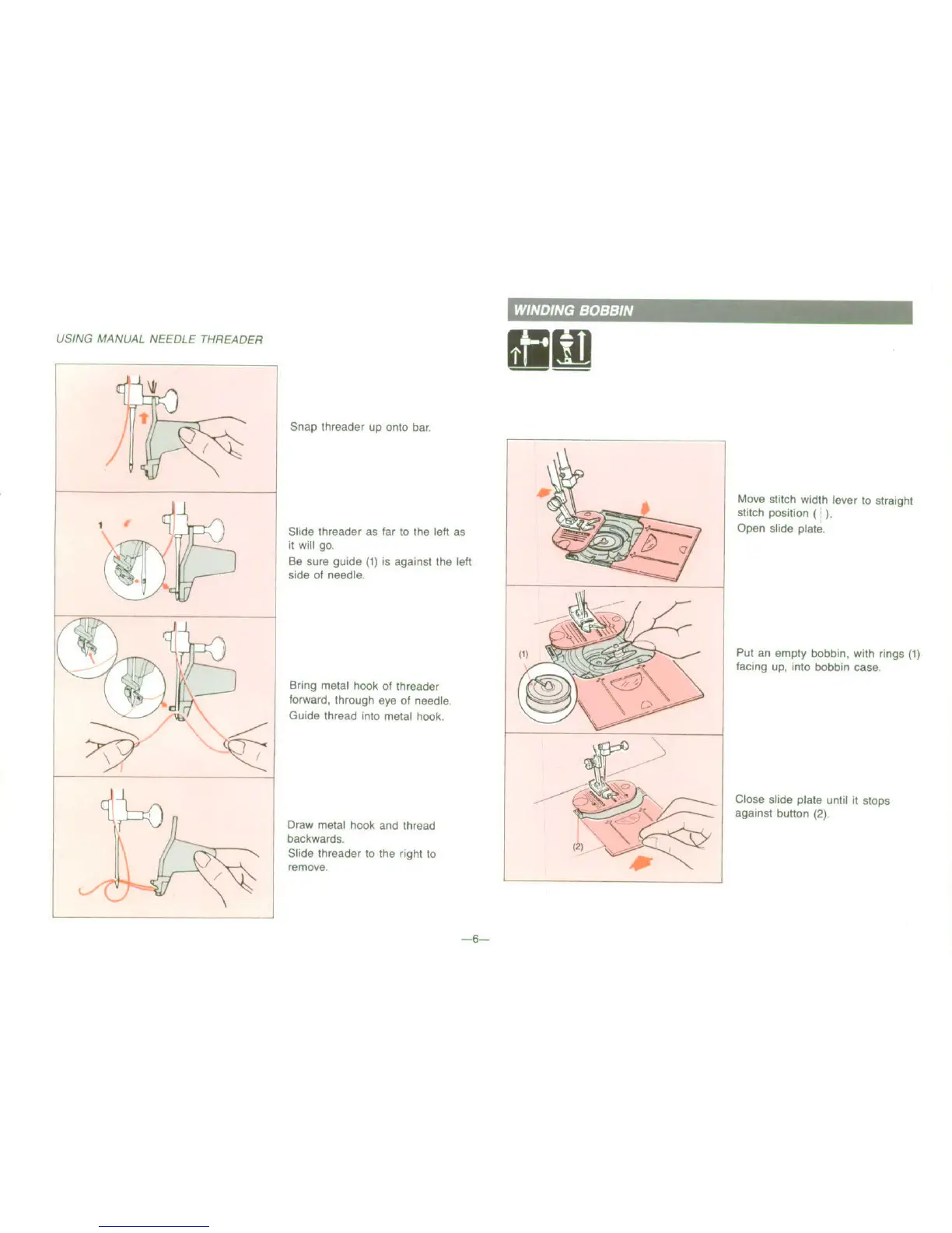 Singer Quantum - Manual Needle Threader Use; Winding the Bobbin