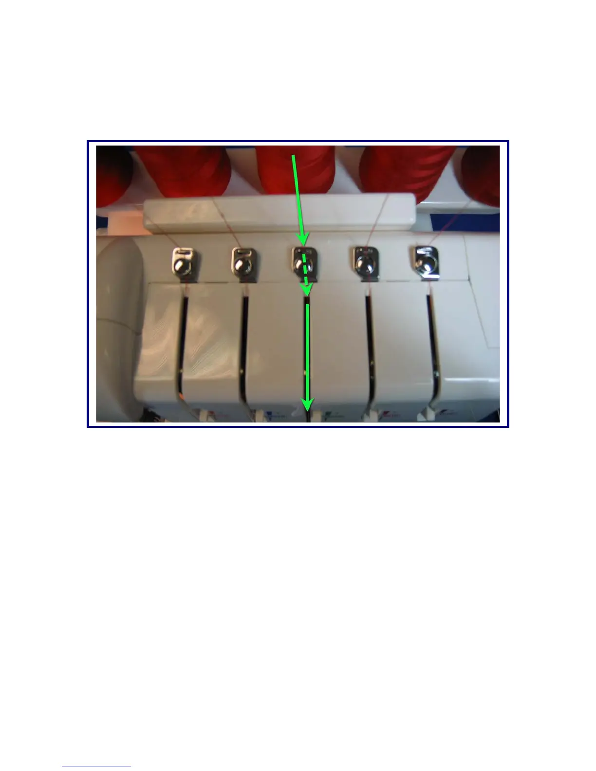 Singer Quantumlock 14T957DC - THREADING INFORMATION FOR A NARROW 5-THREAD SAFETY STITCH; Threading Green Upper Looper (5-Thread)